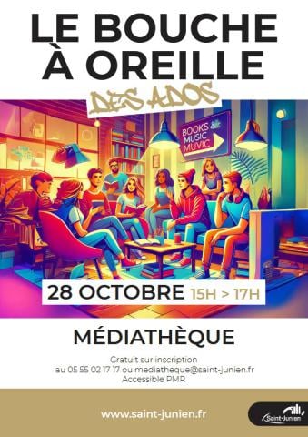 Le Bouche à oreille des ados est un espace d’échange pensé spécialement pour les jeunes. Viens partager tes coups de cœur : livres, films, séries, jeux vidéo, podcasts ou musiques, et découvre ceux des autres participants.